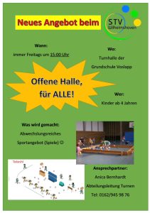 • „Offene Halle“ für Kinder ab 4 Jahren (kindgerechte Spiele)